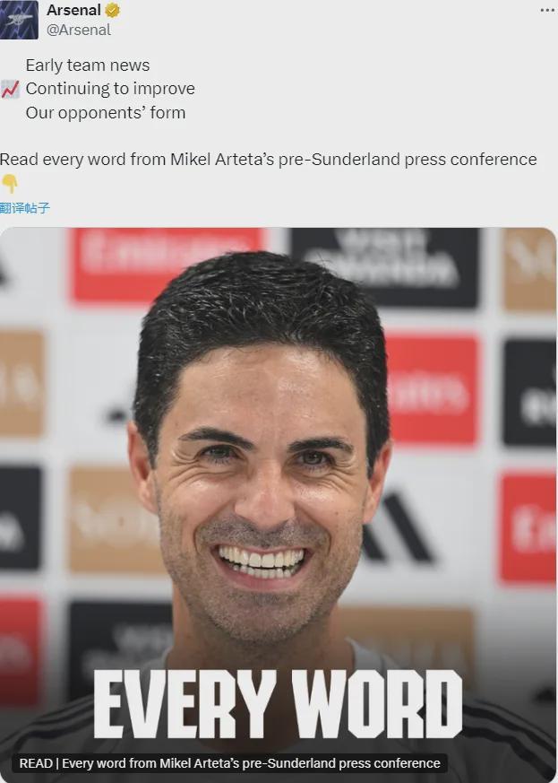 阿尔特塔出席了赛前新闻发布会,我们只看关键的几个内容。