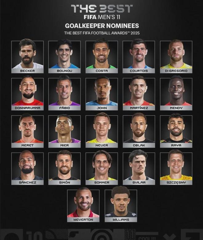 阿森纳球员被提名为了FIFA2025年度最佳阵容候选。